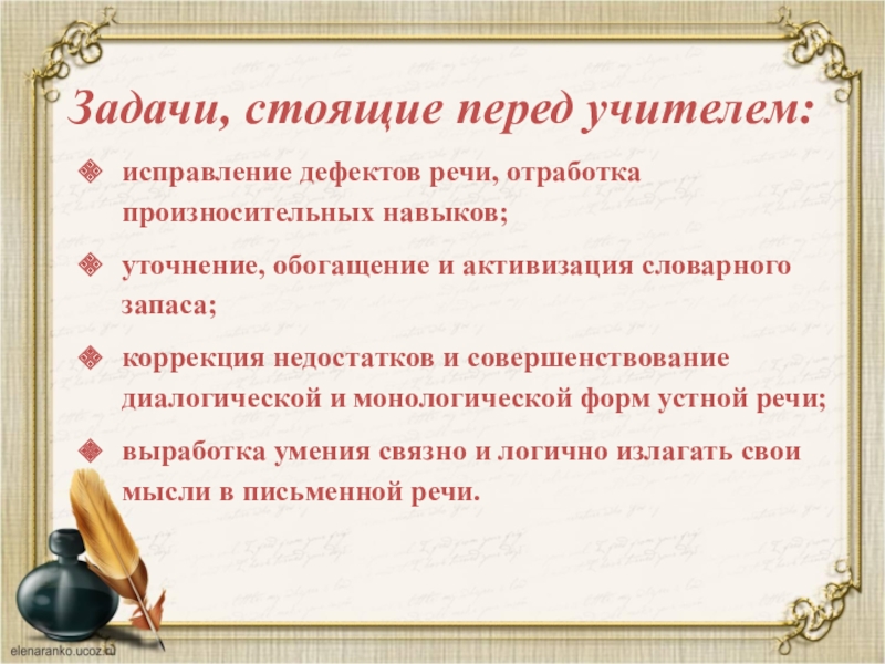коррекция недостатков и совершенствование диалогической и монологической форм устной речи;