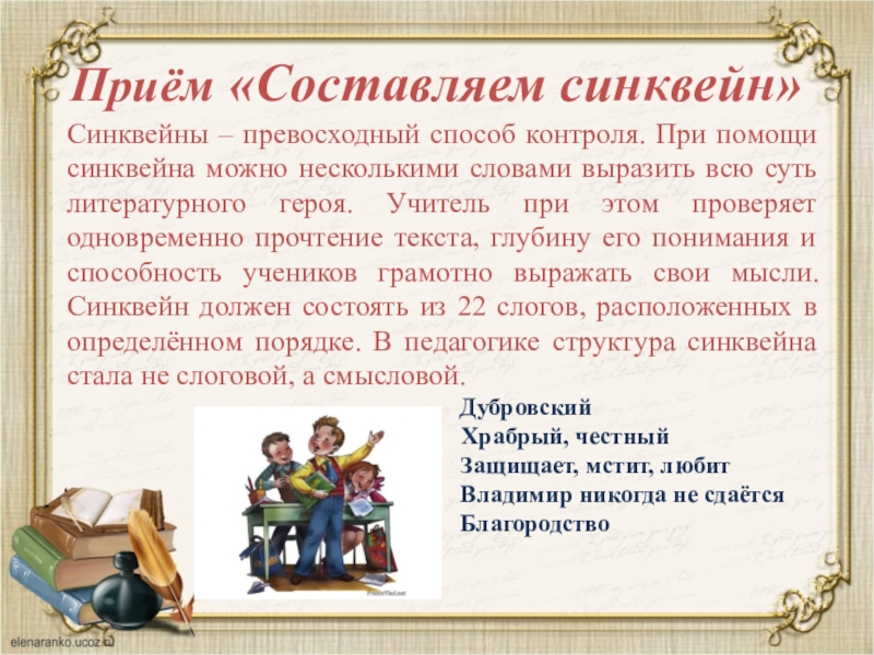 Синквейны – превосходный способ контроля. При помощи синквейна можно