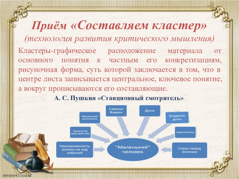 понятия к частным его конкретизациям, рисуночная форма, суть которой заключается в том, что в центре листа записывается центральное, ключевое понятие, а вокруг прописываются его составляющие.