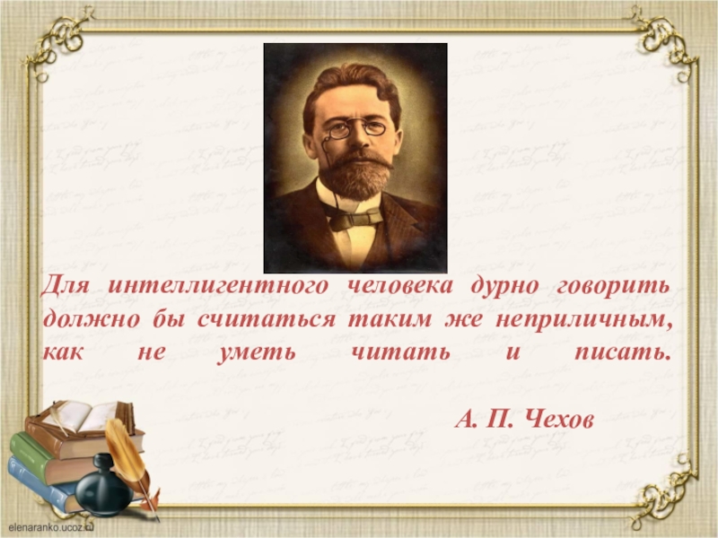 Для интеллигентного человека дурно говорить должно бы считаться таким же неприличным,