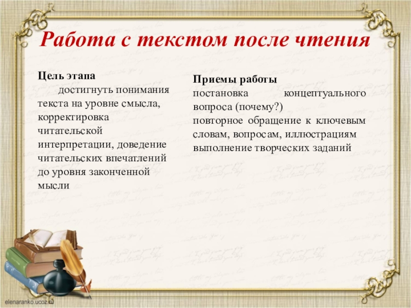 корректировка читательской интерпретации, доведение читательских впечатлений до уровня законченной мысли