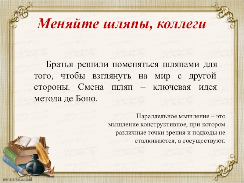Параллельное мышление – это мышление конструктивное, при котором различные точки зрения и подходы не сталкиваются, а сосуществуют.
