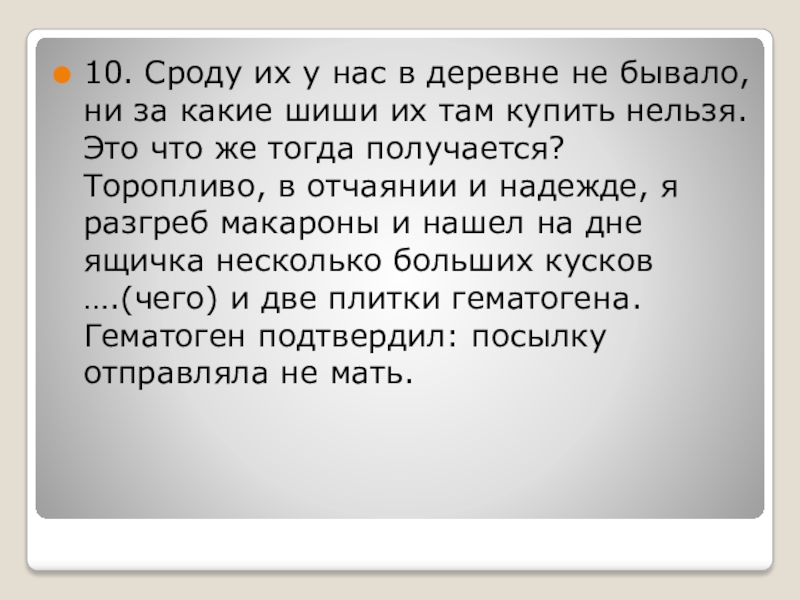 Слайд 610. Сроду их у нас в деревне не бывало, ни за