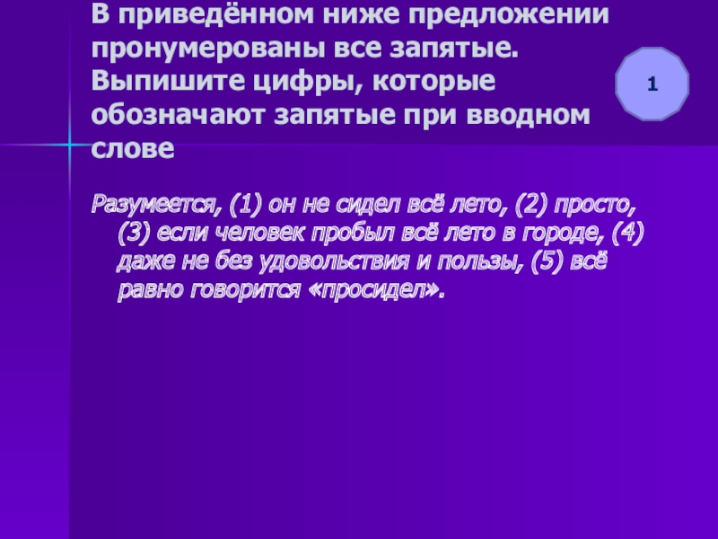 Разумеется, (1) он не сидел всё лето, (2) просто, (3) если человек пробыл всё лето в городе, (4) даже не без удовольствия и пользы, (5) всё равно говорится «просидел».