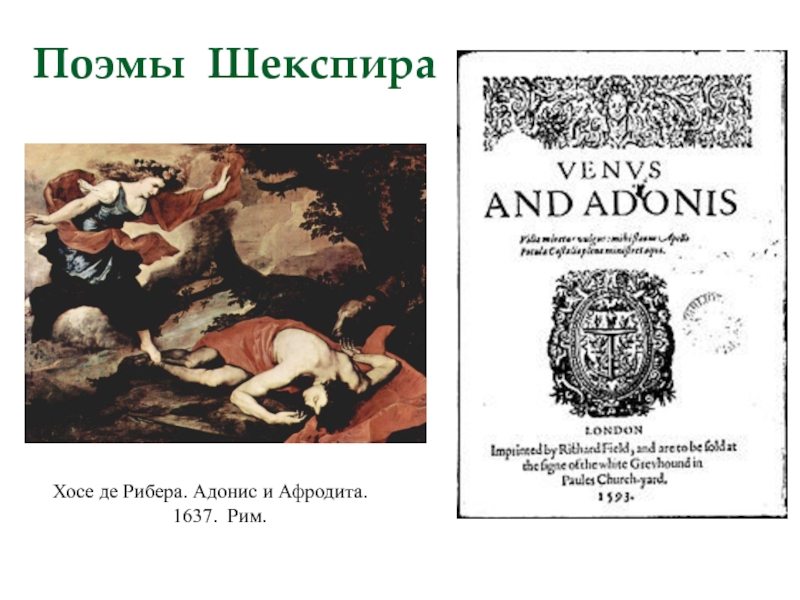 Поэмы Шекспира  Хосе де Рибера. Адонис и Афродита.