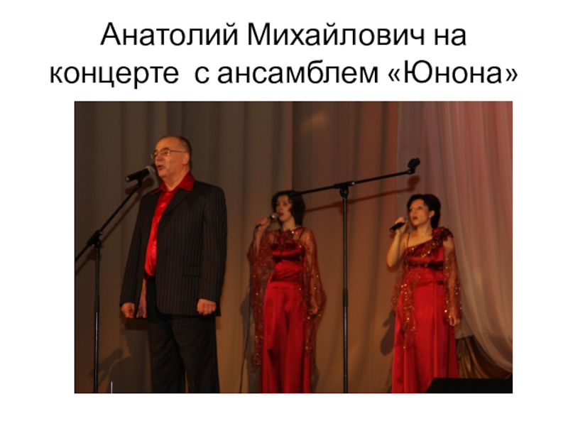 Слайд 9Анатолий Михайлович на концерте с ансамблем «Юнона»