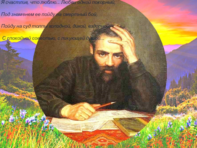Слайд 6Я счастлив, что люблю... Любви одной покорный, Под знаменем ее пойду