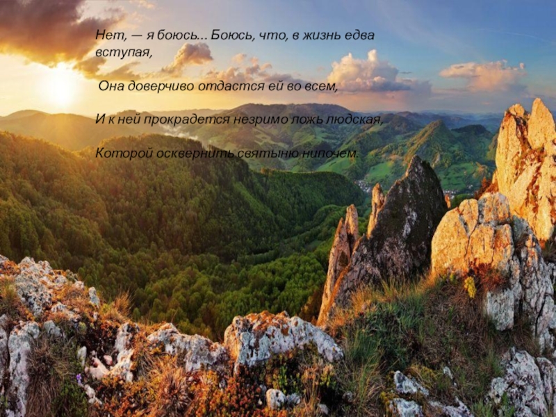 Слайд 8Нет, — я боюсь... Боюсь, что, в жизнь едва вступая, Она