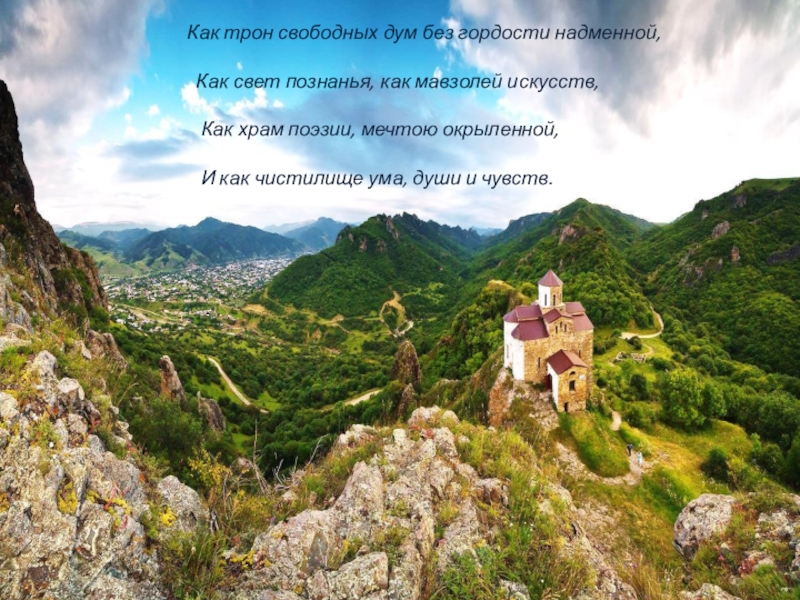 Слайд 4Как трон свободных дум без гордости надменной,
