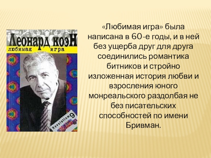 Слайд 2С юности Коэн увлекался поэзией: его первый сборник стихов “Let Us