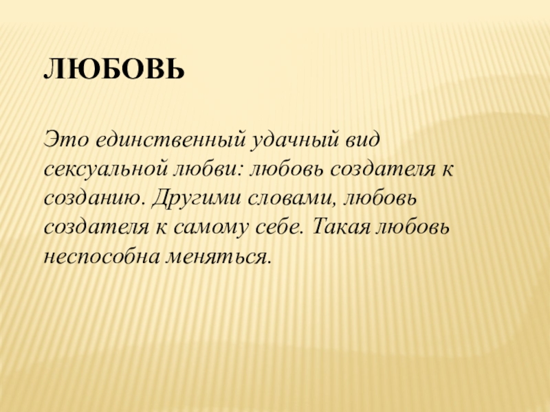 словами, любовь создателя к самому себе. Такая любовь неспособна меняться.