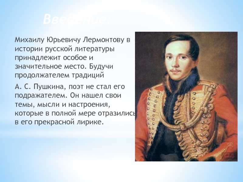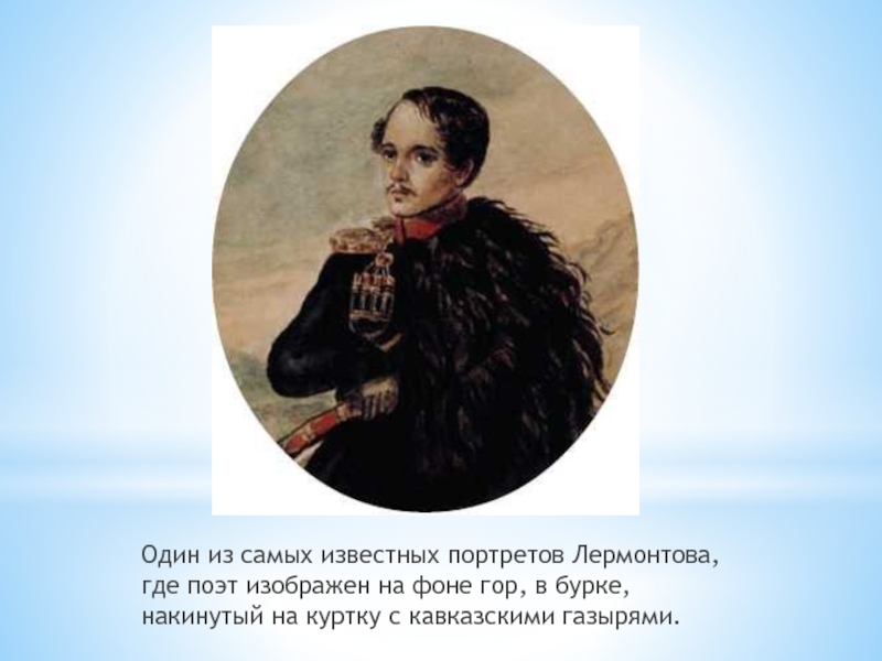 Один из самых известных портретов Лермонтова, где поэт изображен на фоне