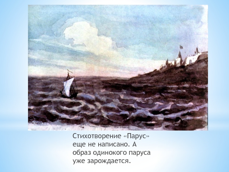 Слайд 18Стихотворение «Парус» еще не написано. А образ одинокого паруса уже зарождается.