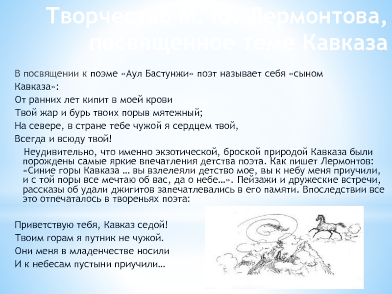 Слайд 10Творчество М. Ю. Лермонтова, посвященное теме Кавказа