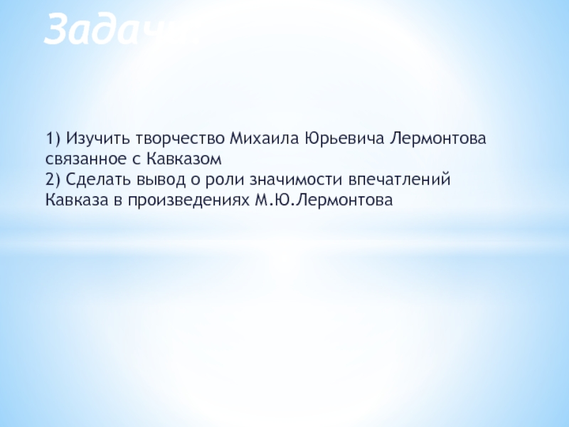 Слайд 51) Изучить творчество Михаила Юрьевича Лермонтова связанное с Кавказом