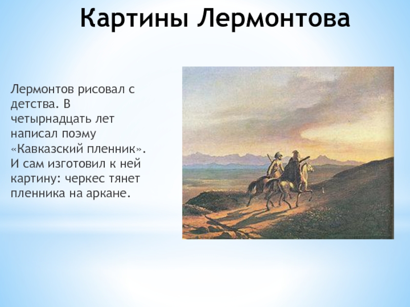 Лермонтов рисовал с детства. В четырнадцать лет написал поэму «Кавказский