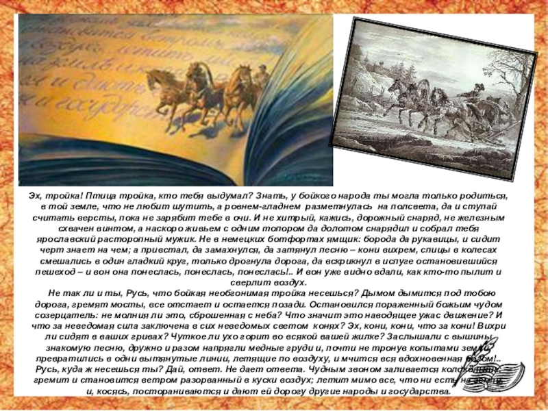 Слайд 29Эх, тройка! Птица тройка, кто тебя выдумал? Знать, у бойкого народа