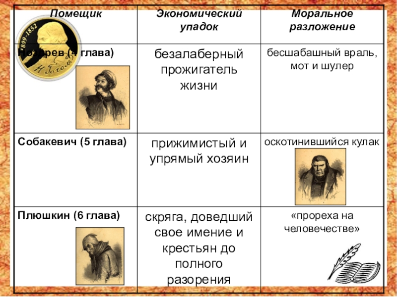 характера каждого из помещиков, показать роль данных образов в раскрытии авторского замысла.