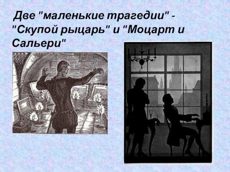 Слайд 23 Две "маленькие трагедии" - "Скупой рыцарь" и "Моцарт и Сальери"