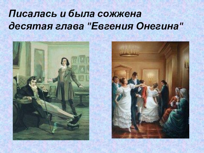Слайд 24Писалась и была сожжена десятая глава "Евгения Онегина"