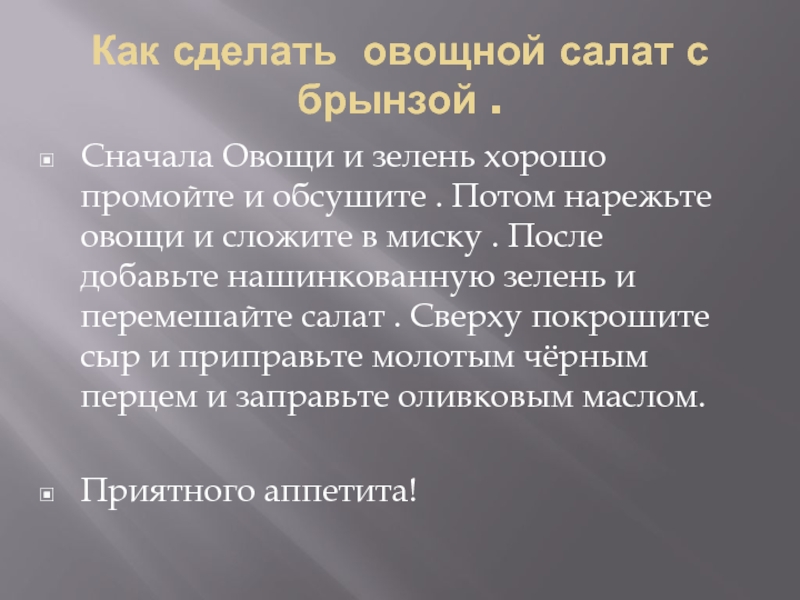 Слайд 1Как сделать овощной салат с брынзой