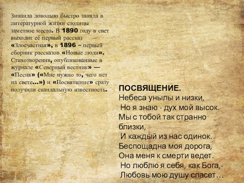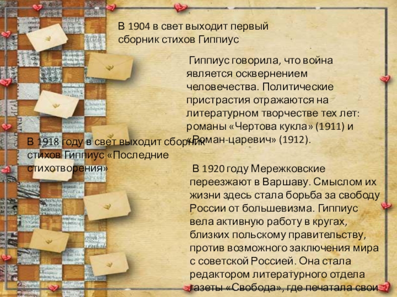 В 1918 году в свет выходит сборник стихов Гиппиус «Последние стихотворения»