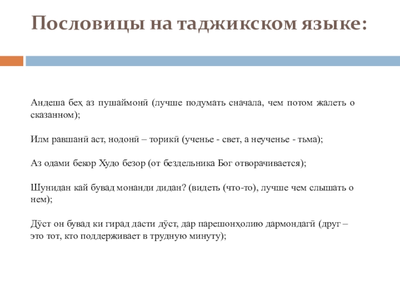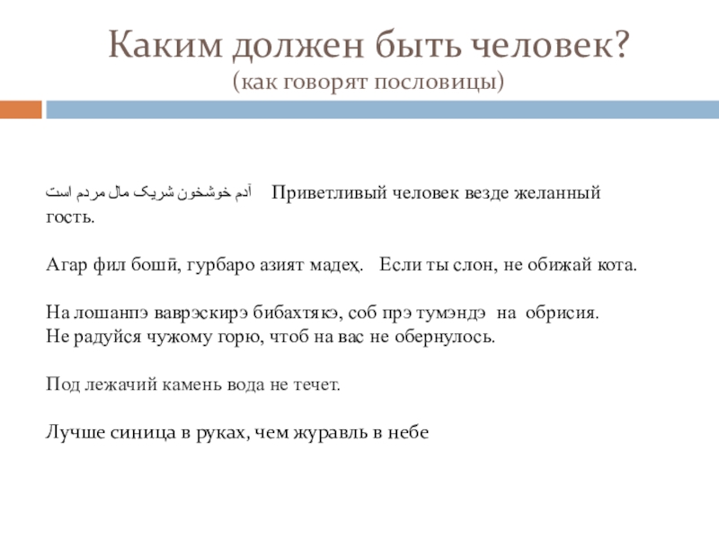 Слайд 1Пословицы народов, представители которых случайно собрались в 7 классе вечерней школы