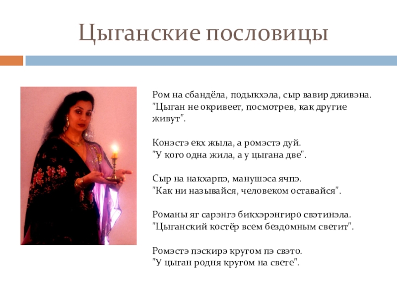 Цыганский язык является не только языком народа, уникального по одаренности и душевным качествам, но и сам по себе уникален в том отношении, что это единственный язык в Европе, который относится к индийской семье языков. Сейчас цыган можно встретить практически везде, кроме разве что Антарктиды и Японии.