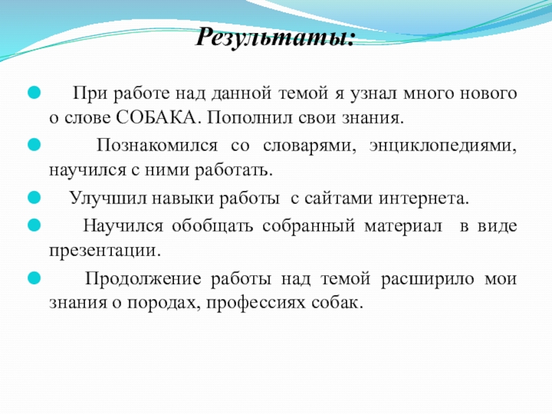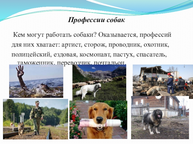 Продолжение работы над темой расширило мои знания о породах, профессиях собак.