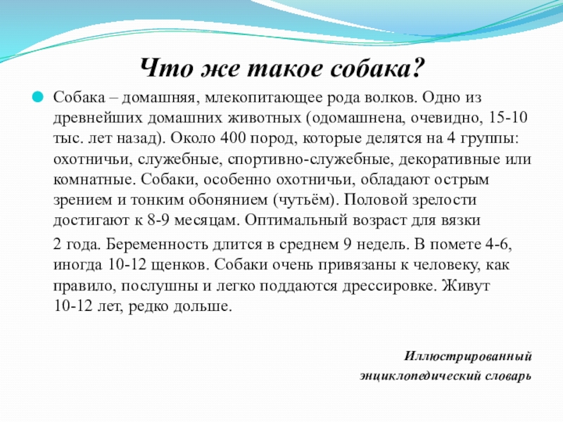 Собака – домашняя, млекопитающее рода волков. Одно из