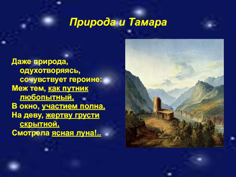- определить роль эпитетов и сравнений для создания образа Тамары;