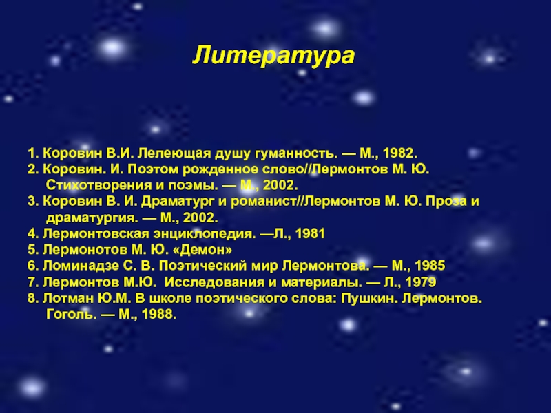 6. Ломинадзе С. В. Поэтический мир Лермонтова. — М., 1985