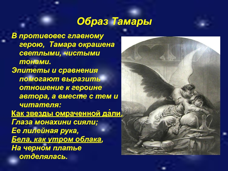 Сравнения, эпитеты, помогающие создать образ Тамары