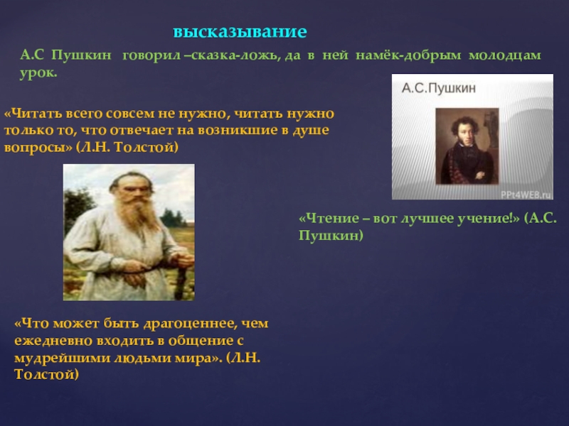 «Что может быть драгоценнее, чем ежедневно входить в общение с мудрейшими людьми мира». (Л.Н. Толстой)