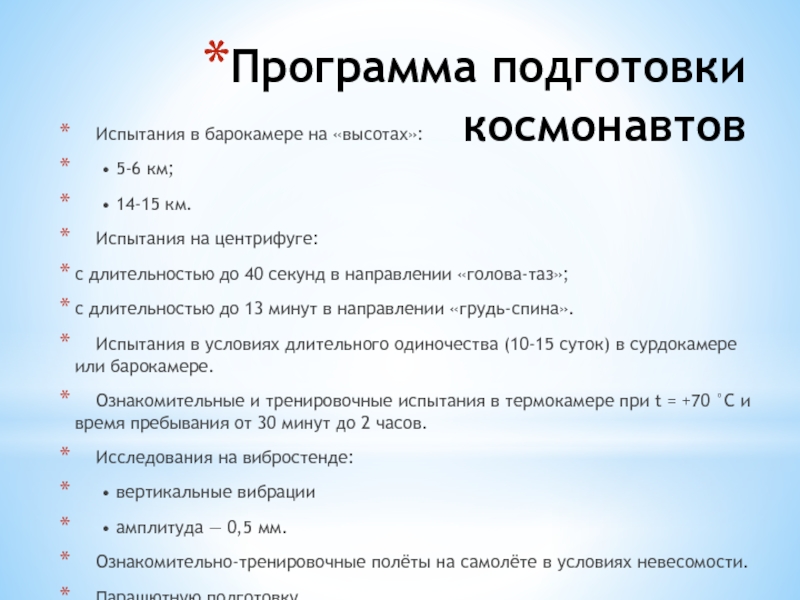 Ознакомительно-тренировочные полёты на самолёте в условиях невесомости.