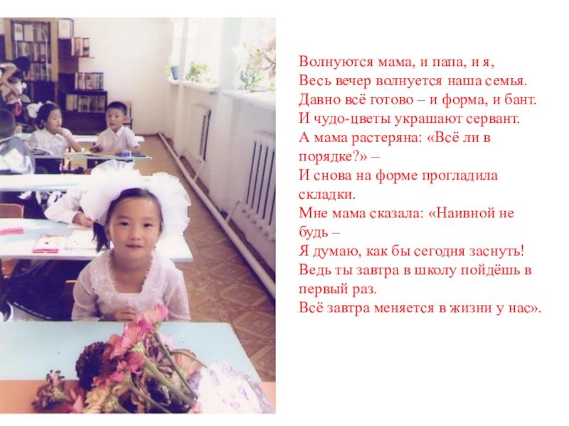 Ведь ты завтра в школу пойдёшь в первый раз.