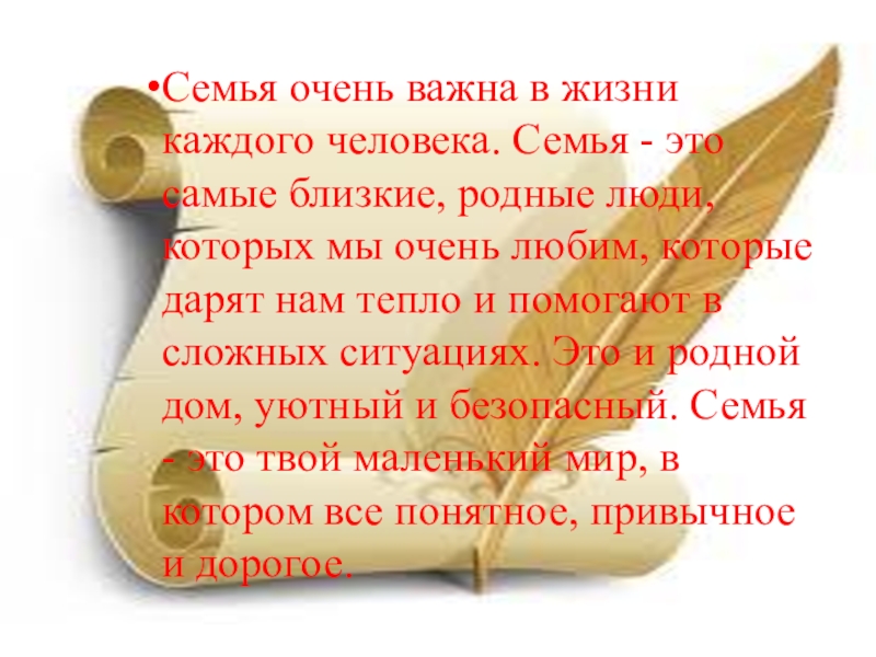 Слайд 2Семья очень важна в жизни каждого человека. Семья - это самые