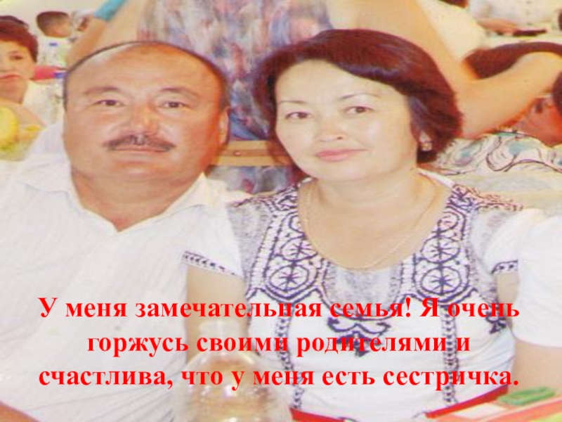 Слайд 3У меня замечательная семья! Я очень горжусь своими родителями и счастлива,