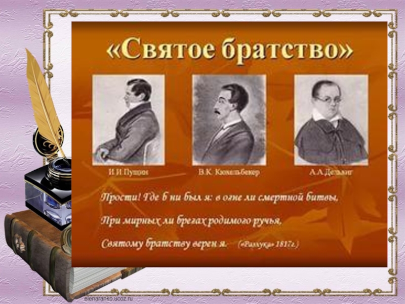 (8)В руках у Пушкина появилась тетрадка. (9)Он перелистал ее и, найдя то, что искал, громко прочел заглавие. (10)С первых же слов друзья поняли, что сейчас они услышат стихи, в которых будет говориться о них. (11)Так оно и оказалось. (12)Пушкин читал стихи о своих товарищах, а они не сводили с него глаз.