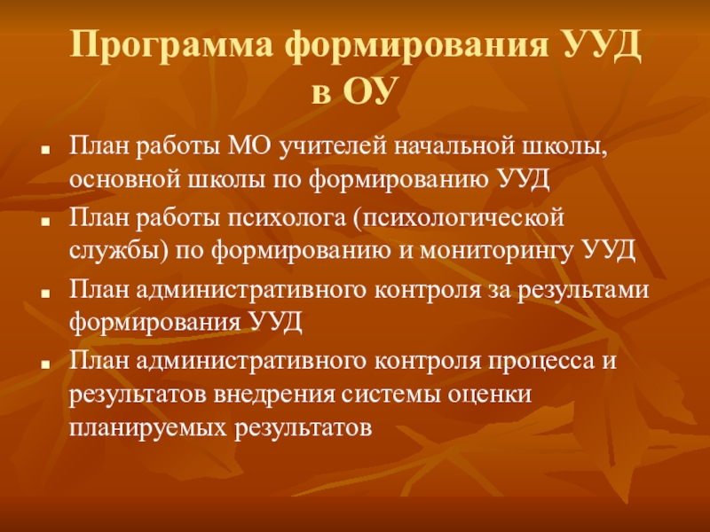 План административного контроля за результами формирования УУД