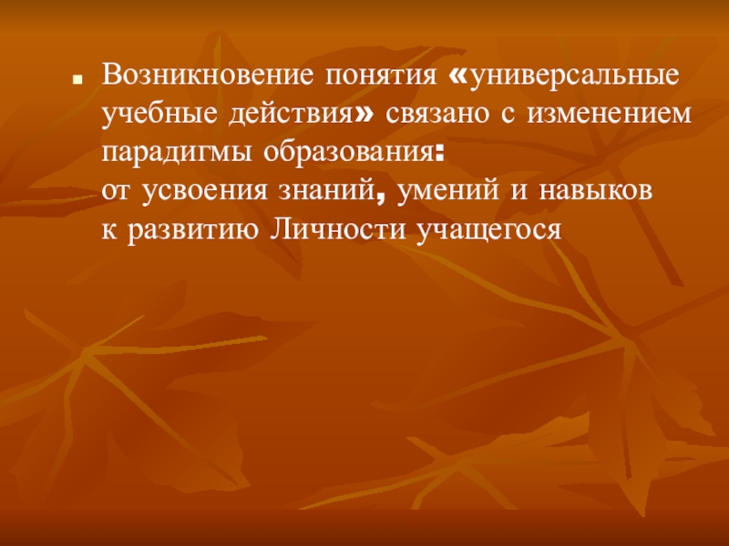 Слайд 4Возникновение понятия «универсальные учебные действия» связано с изменением парадигмы образования: