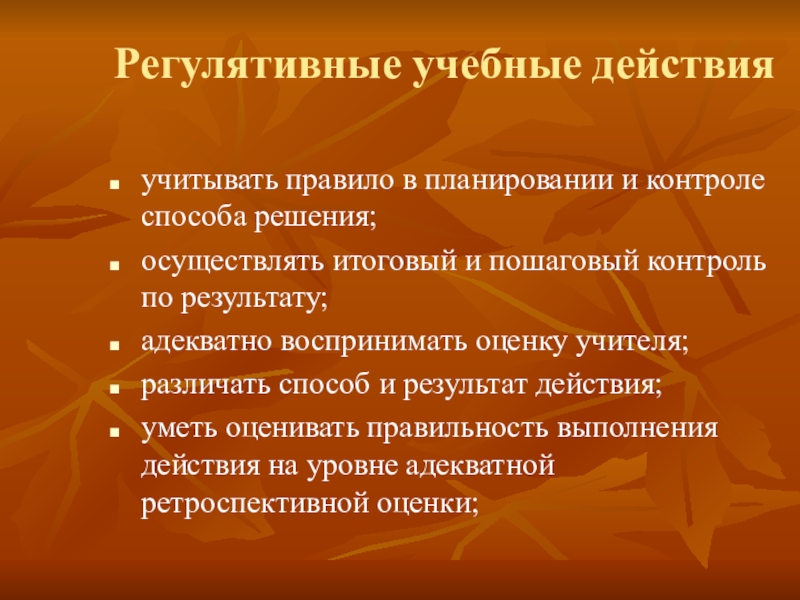 Слайд 19Регулятивные учебные действия