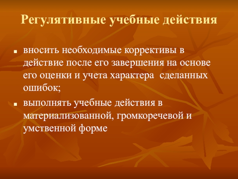 Слайд 21Регулятивные учебные действия