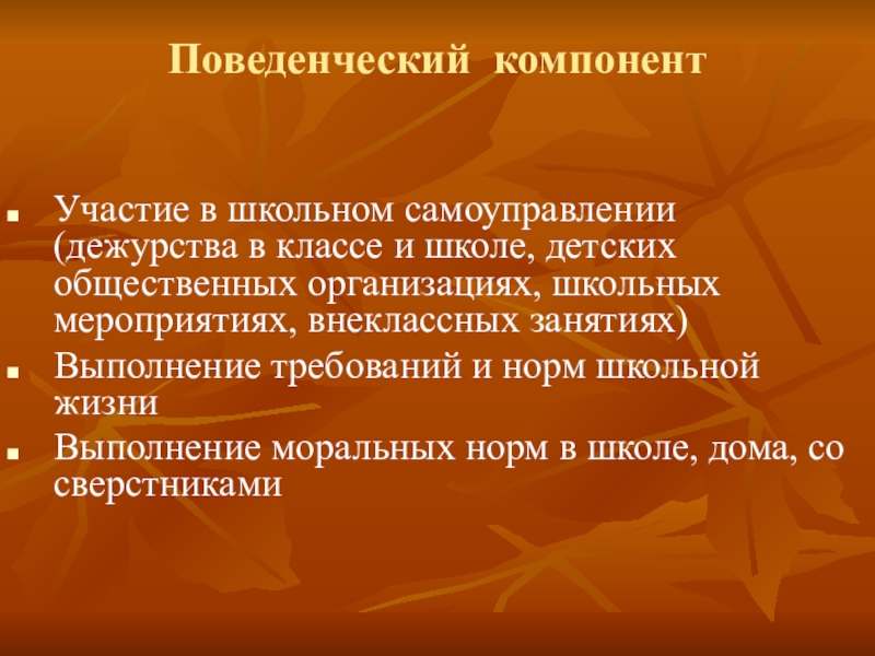 Слайд 30Поведенческий компонент