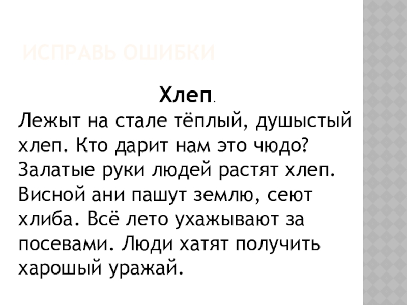 Была бы пищя. А где взять пищу земою? Рыщут волки. Бродют лисы. Пустынно в лису. Звирьки и птичьки спрятались. Днём литаит вороны. Ночью литает совы. Ищат добычу. Голадно в лису.