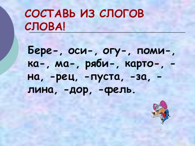 СОСТАВЬ ИЗ СЛОГОВ СЛОВА!