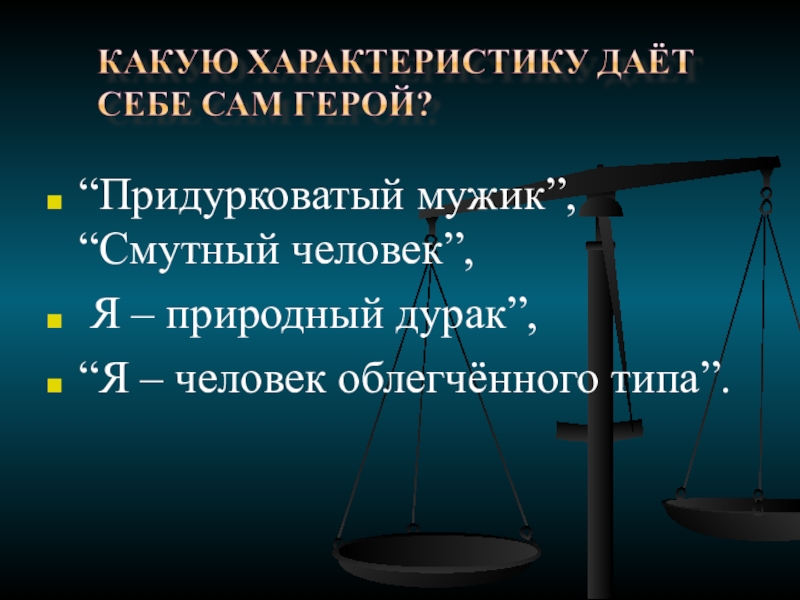 Слайд 11“Придурковатый мужик”, “Смутный человек”,