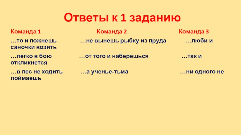 1.Что посеешь, … 1.Без труда… 1. Любишь кататься-…