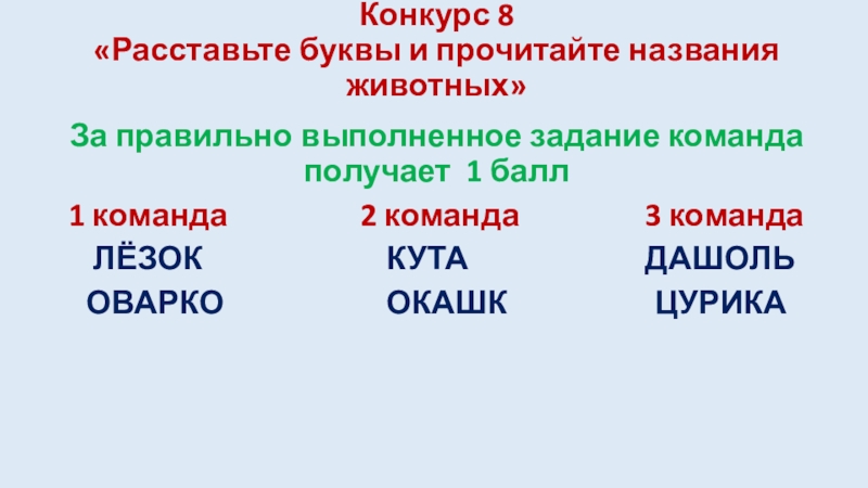 Команды по очереди отвечают на вопросы. За каждый правильный