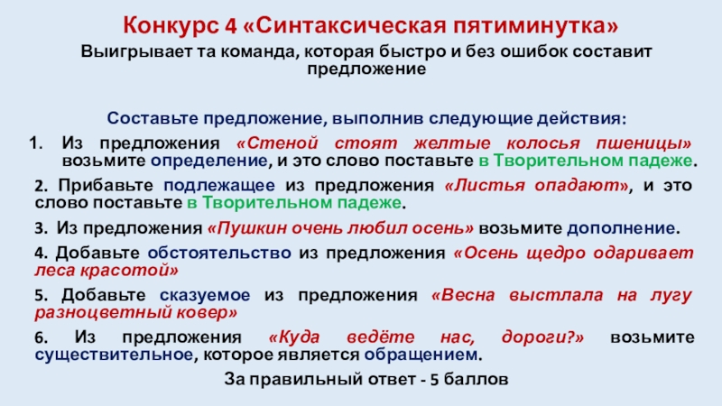 Слайд 7Конкурс 4 «Синтаксическая пятиминутка»